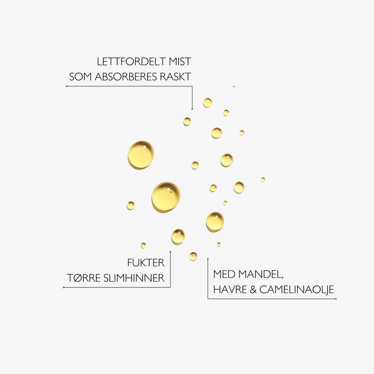 “Gynekologer pleier å anbefale olje for tørre og skjøre slimhinner før og under overgangsalderen. Plantebaserte oljer er svært pleiende, mykgjørende og fuktighetsgivende for slimhinnene. Denne leave-in oljen gir en fin tåke, er praktisk å ha med i vesken og kan sprayes ved behov for å holde slimhinnene fuktige gjennom dagen.”